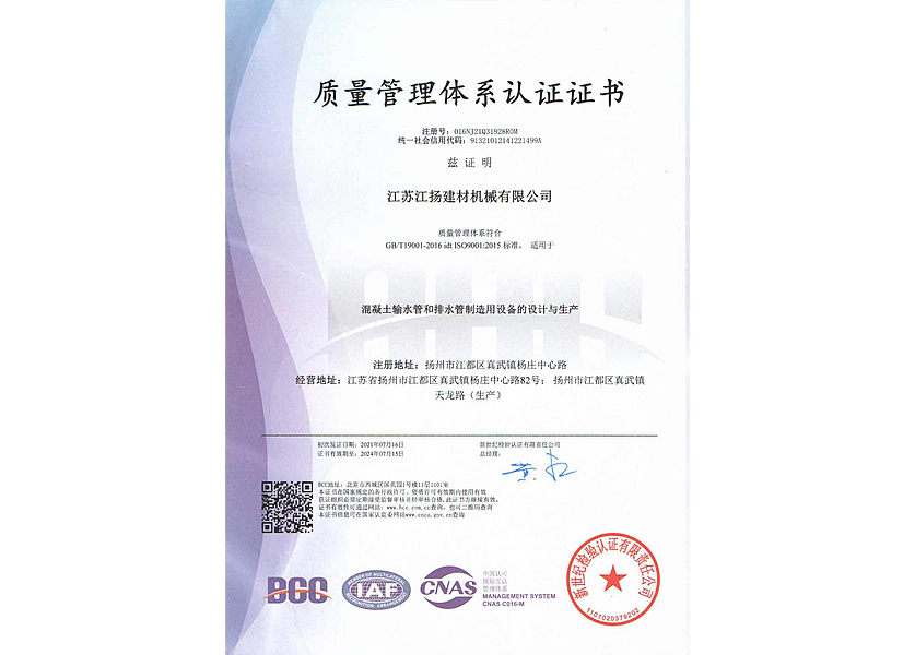 質(zhì)量管理體系證書(shū)